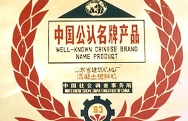 1993建友牌攪拌主機榮獲“中國公認名牌產(chǎn)品”